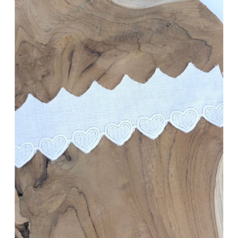 Galon Popeline Coton Coeur Brodé 4.5 cm