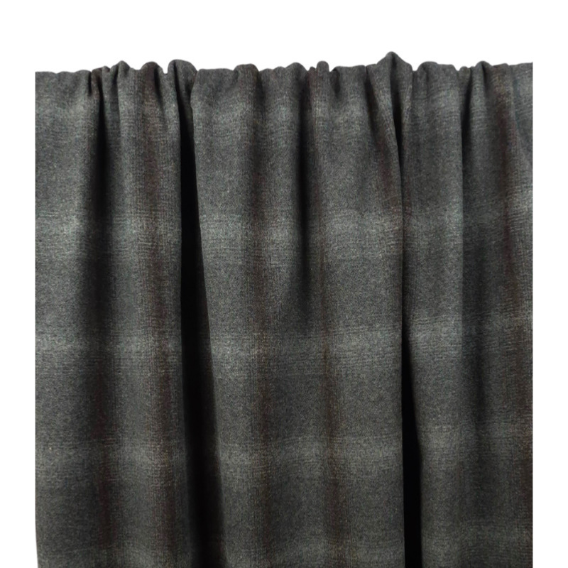 Tissu Lainage 100 % Laine HULL Carreaux Gris / Choco