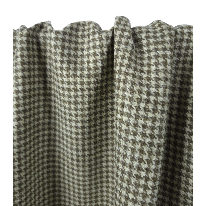 Tissu Lainage Léger 100 % Laine Pied de Poule Beige / Brun