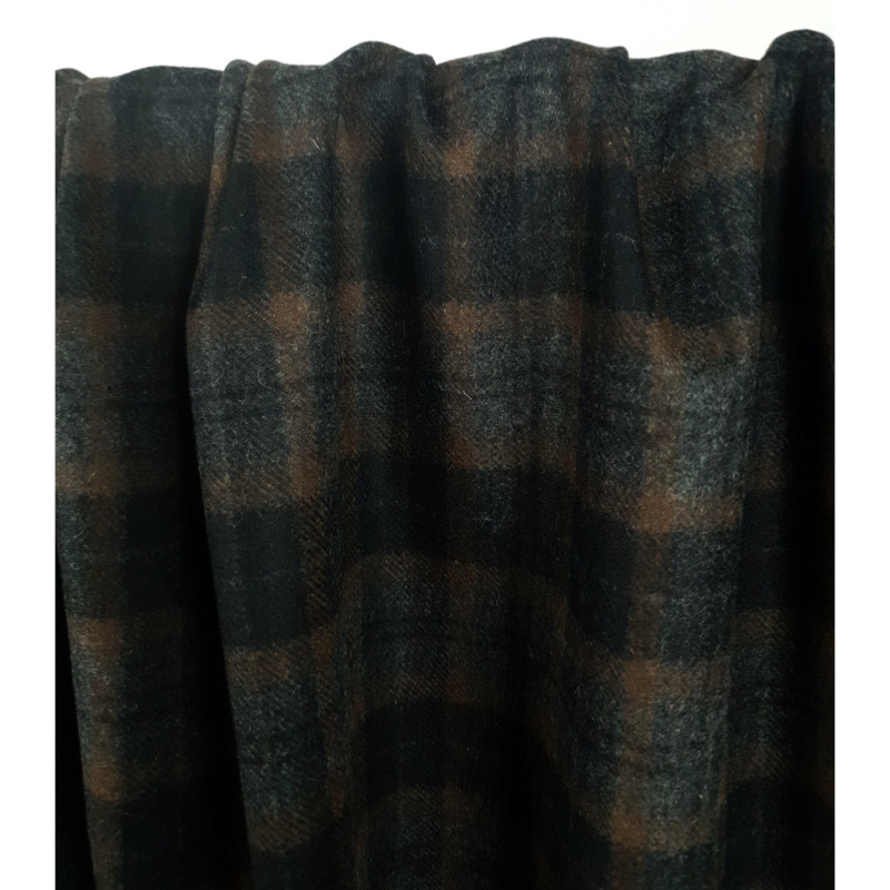 Tissu Lainage Mélange Laine TARTAN Noir / Gris & Noisette