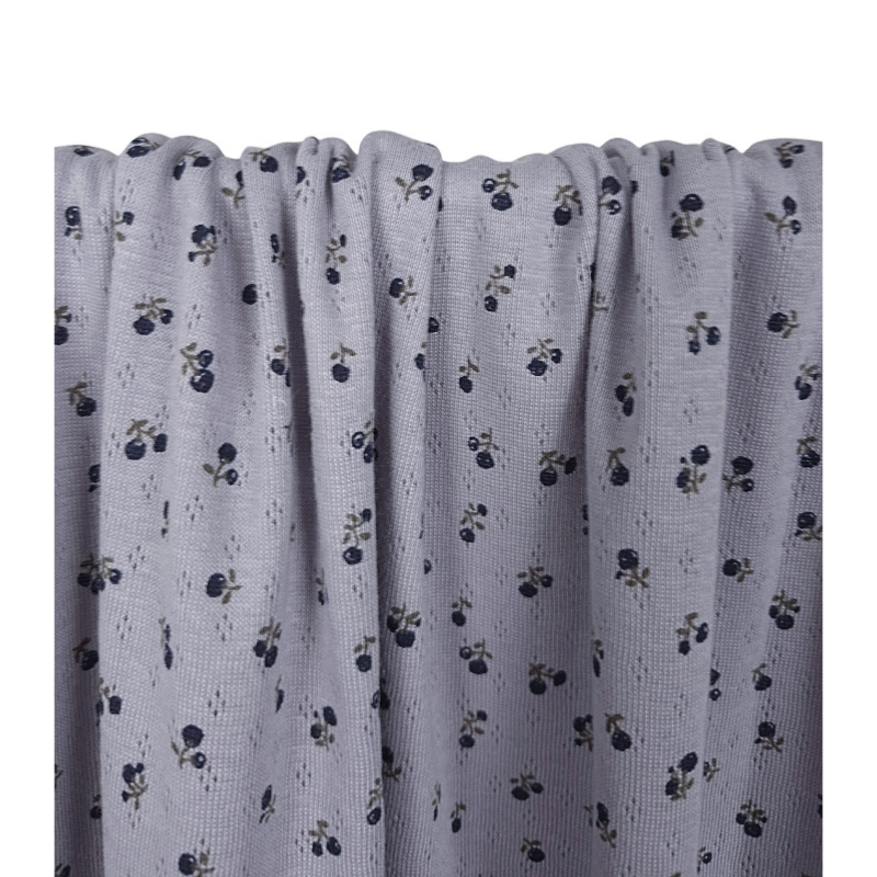 Tissu Maille Cote 1x1 Pointelle Gris Fleurs Marine