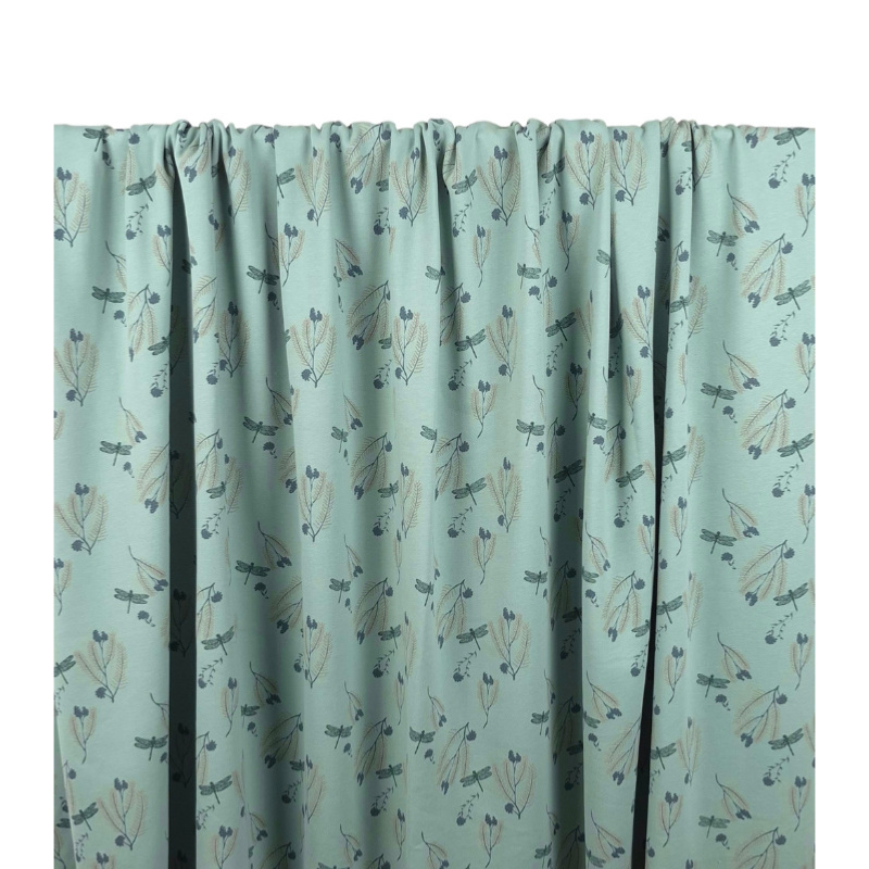 Tissu Maille Molleton Fleurs & Libellule Céladon
