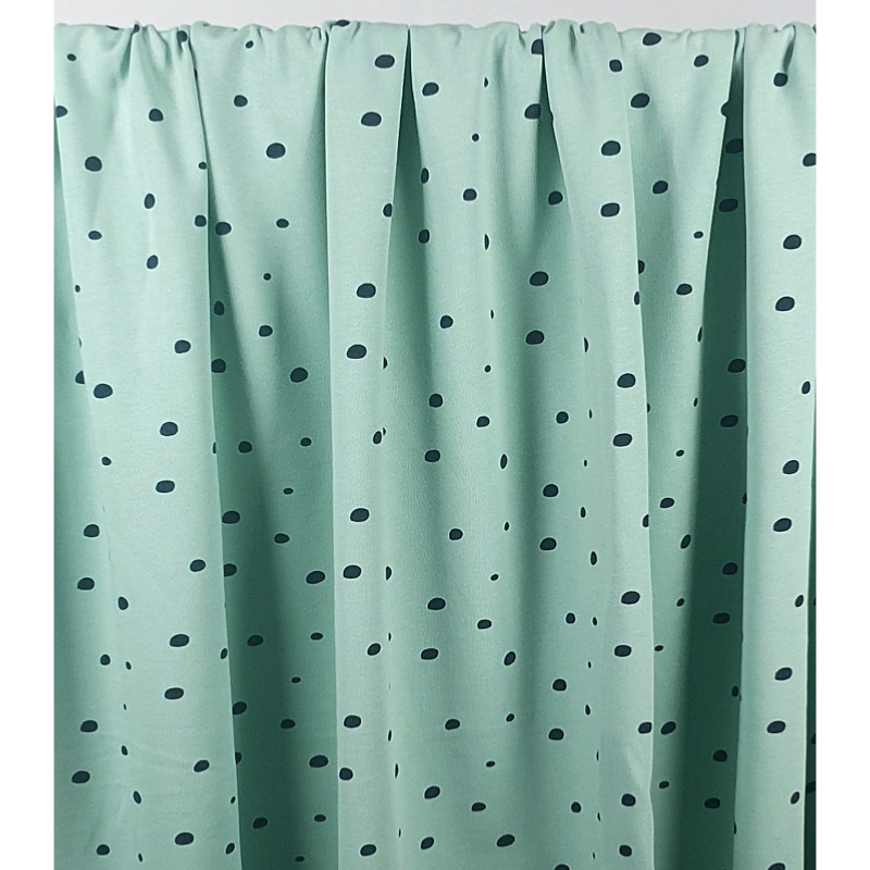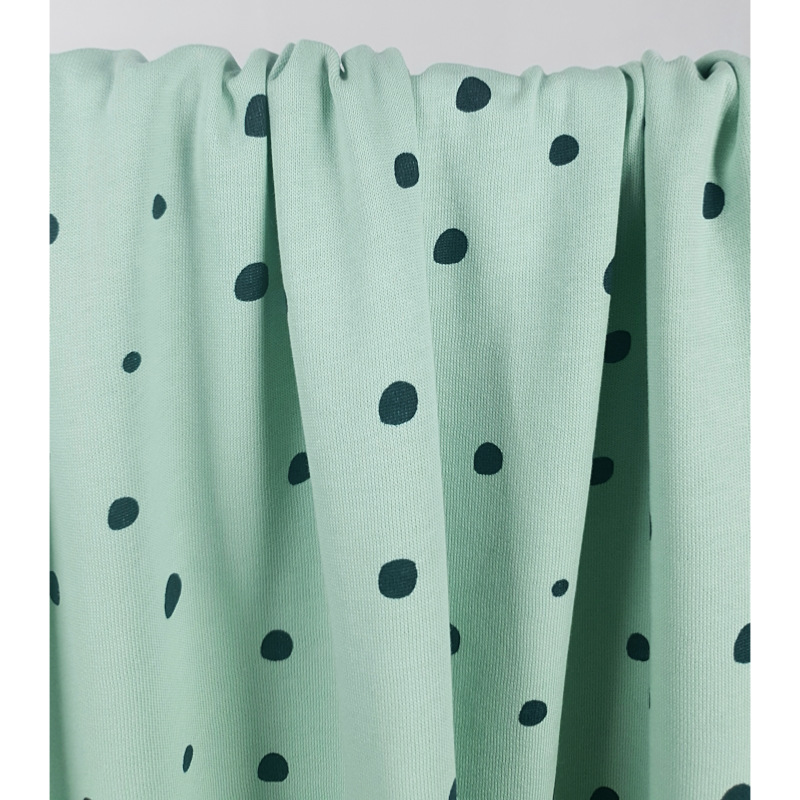 Tissu Maille Molleton Gratté Coton BIO Pois Irrégulier Céladon