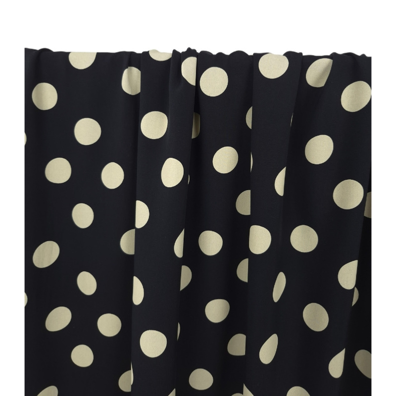 Tissu Popeline Viscose Ecovero Dots Noir / Ecru