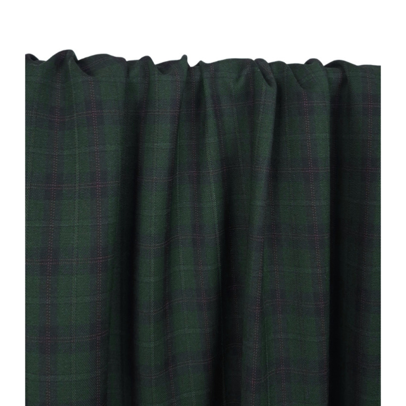 Tissu Tailleur Mélange Laine Carreaux Vert Bouteille